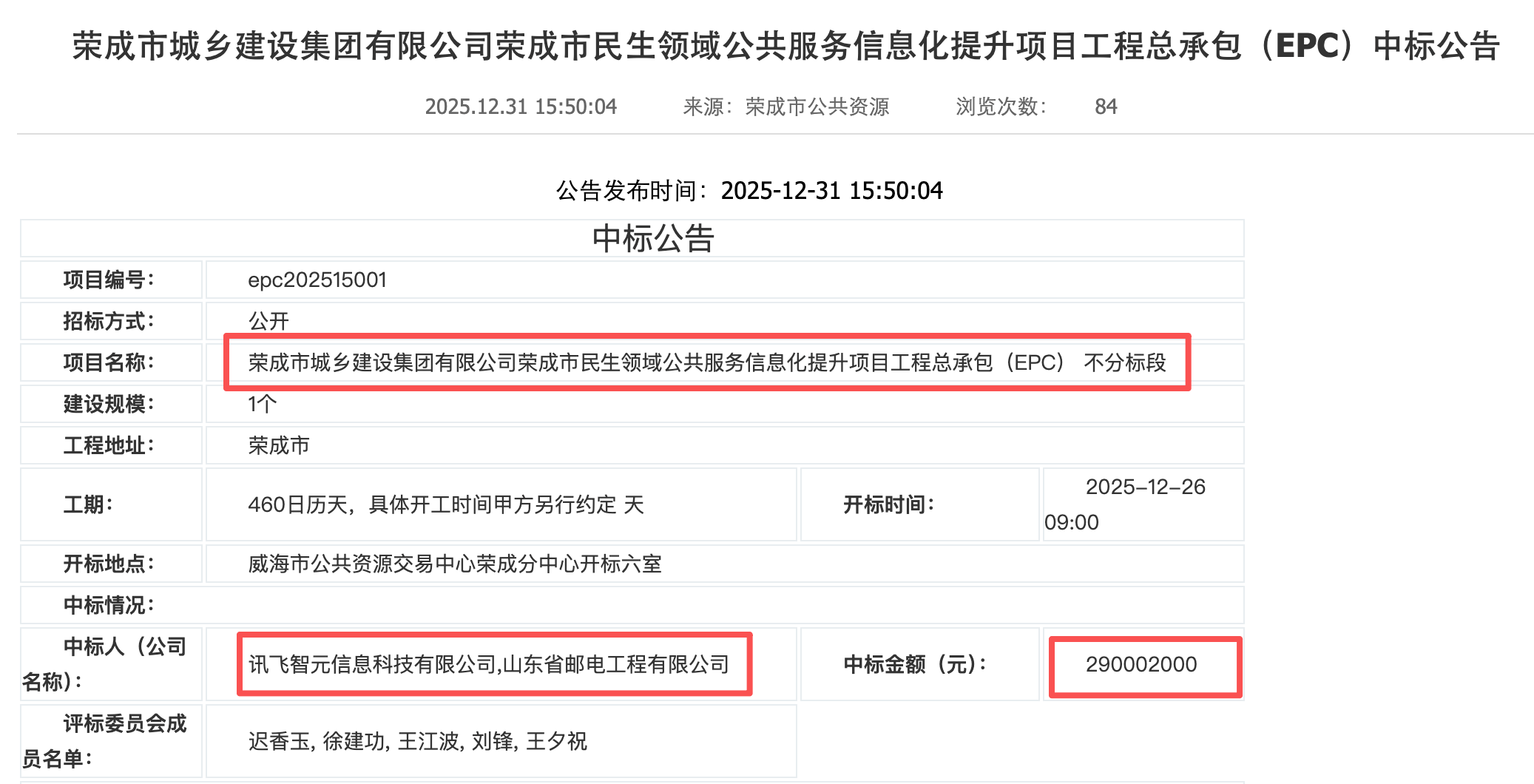 2025年12月31日,山东荣成市一项重大民生信息化项目公布中标结果,科大讯飞全资子公司讯飞智元与山东省邮电工程有限公司组成的联合体成功中标,项目金额达2.9亿元。这一项目旨在通过数字化手段全面提升当地教育、医疗及文旅领域的公共服务水平。