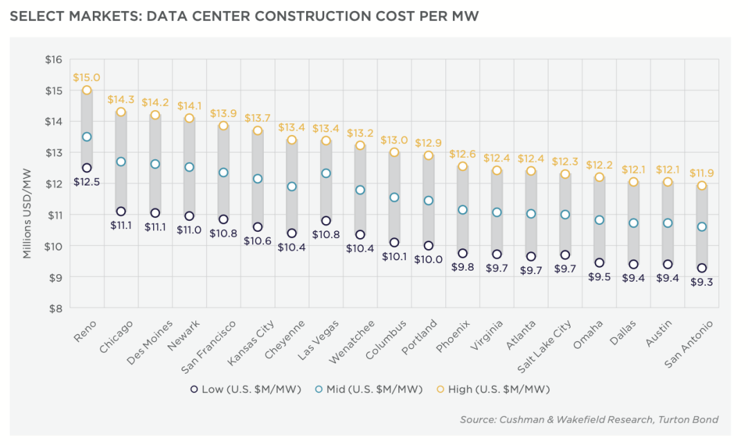 AI算力需求的爆发式增长,正在重塑数据中心行业的竞争格局。与传统IDC(互联网数据中心)以3-10kW机柜为主的模式不同,AI训练集群对单机柜功率的需求飙升至80-120kW。据Cushman & Wakefield报告,北美成熟市场已因电力短缺陷入困境,变压器、不间断电源(UPS)等设备的交付周期延长至30-48周,每兆瓦建设成本攀升至930-1500万美元。这一背景下,“谁能获取电力资源,谁就能掌握算力话语权”成为行业共识,而灿谷的转型路径恰好踩中了这一趋势。