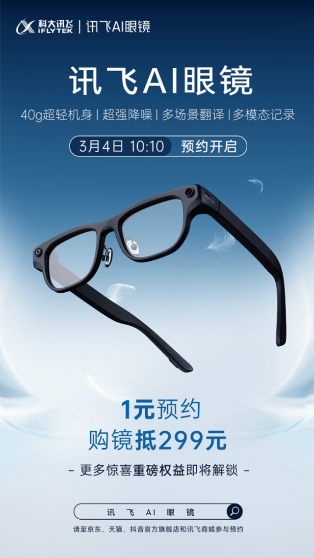 目前,讯飞AI眼镜已在京东、天猫、抖音、小红书、讯飞商城及微信小店开启线上1元预约活动。用户可通过官方平台抢先锁定体验权益,提前感受这款“随身AI翻译官”带来的效率革命。其目标用户覆盖跨国商务从业者、企业管理者、高级白领,同时辐射留学生、跨国家庭及科技爱好者,有望成为智能穿戴设备从工具属性向生态价值跃升的标杆产品。