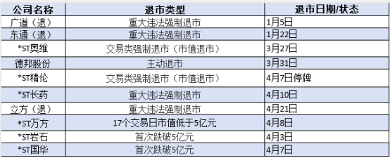 交易类退市格局发生根本性转变。4月7日,*ST精伦因连续20个交易日市值低于5亿元触发退市条款,成为沪市首例市值退市案例。值得注意的是,该公司同时面临股价逼近1元面值红线、2025年营收仅8622万元等多重退市风险。另一典型案例*ST奥维,因前三季度营收同比暴跌87%至3400万元,净利润亏损1.88亿元,最终于3月27日摘牌。目前,已有8家企业总市值持续低于5亿元,其中*ST万方已连续17个交易日触及该指标。