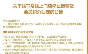 目前,万宁中国官网已发布详细关停时间表,并提醒消费者在停运前及时使用会员积分及处理未完成订单。部分门店已启动清仓促销活动,吸引消费者前往选购。业内人士指出,这一事件或引发连锁反应,推动其他外资药妆品牌重新评估在华战略。