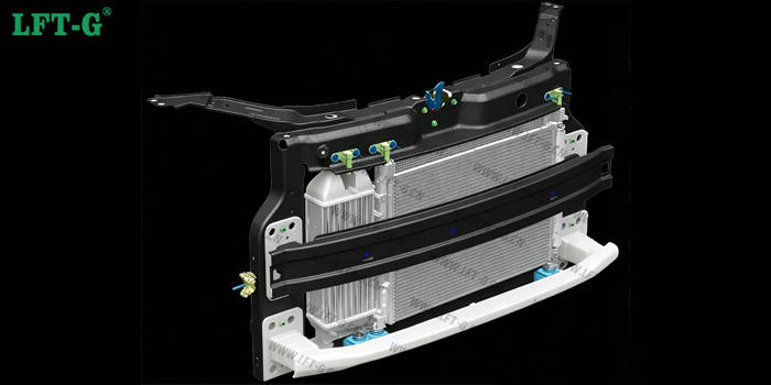 车企针对前端模块LFT材料的选型,并非单纯追求高性能,而是基于车型定位、工况环境、结构载荷、成本管控、轻量化目标、工艺适配性六大核心维度综合决策。车型售价与成本阈值是核心决定因素,LFT材料成本梯度清晰,LGF - PP<LGF - PA<LGF - PPS,玻纤含量越高,原材料成本越高。经济型、中端车型严格控制物料成本,优先选用30%/40%配比LGF - PP;中高端车型可适度放宽成本,采用PP + PA复合方案提升结构可靠性;豪华车型不计较局部材料溢价,采用PPS特种材料保障极致品质与耐久性。前端模块工况环境也至关重要,常规机舱温度(<120℃)、无强腐蚀介质环境,PP基LFT完全达标;靠近发动机、长期高温辐射(120 - 180℃)、接触冷却液/机油的区域,需选用耐高温、耐化学腐蚀的PA基LFT;高温暴晒强度高、温差循环剧烈、长期高湿环境的豪华车型,采用PPS基LFT解决长期老化、形变、腐蚀问题。结构载荷与集成复杂度决定了强度与刚性需求,低配简易前端模块、无重载集成结构,选用LGF30 - PP即可满足需求;搭载大尺寸散热器、多电器模块、强化防撞结构的复杂骨架,必须选用刚性更强的LGF40 - PP;针对防撞梁连接点、传感器底座、高压部件支架等高应力集中点位,需升级PA基LFT补强,避免长期载荷下结构疲劳变形。轻量化目标与碰撞安全要求、尺寸精度与NVH异响控制要求、成型工艺适配性与量产效率等因素也会影响车企的选材决策。