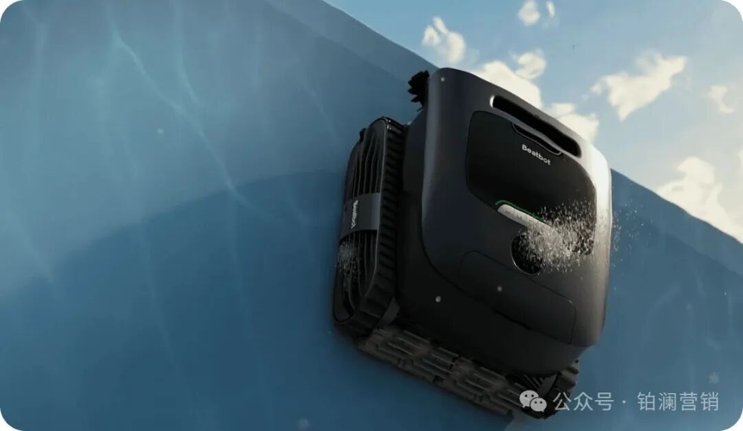 泳池机器人Beadbot: 星迈创新Beatbot是一家研发生产泳池清洁机器人的企业,其产品摒弃了泳池清洁机器的传统类目,以“后院清洁助手”的全新品牌类目切入市场,在红海的泳池机器人市场中,用户往往比拼产品的吸力,续航与清洁效果,新类目的出现让用户对产品的更加关注品牌在智能型,泳池识别,一站式清洁等智能要素的优势,凸显了该品牌在新类目中的竞争优势。