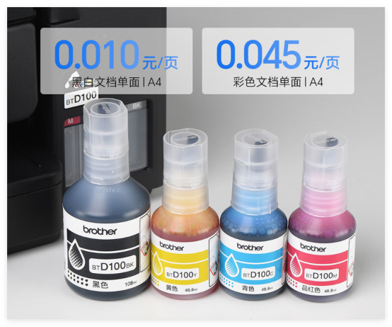 对于打工人来说,节后复工面临的另一大挑战是成本控制。Brother DCP-T735DW的大墨仓设计,彻底改变了彩色打印的经济账。四色独立墨仓足以支撑黑色7500页、彩色5000页的超大印量,核算下来黑白文档单张成本仅需约1分钱,彩色也不过4.5分钱左右,足以轻松消化复工初期的各项打印任务。