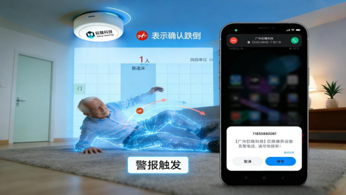 跌倒监测:“点云”勾勒姿态,“多普勒”判断动向,毫米波雷达通过多天线阵列生成高精度的距离点云,实时勾勒出人体的轮廓和空间姿态。结合“多普勒效应”对运动速度和方向的敏锐感知,系统能在人体发生突然高度下降、运动轨迹异常时,可短时间内判断为跌倒事件。