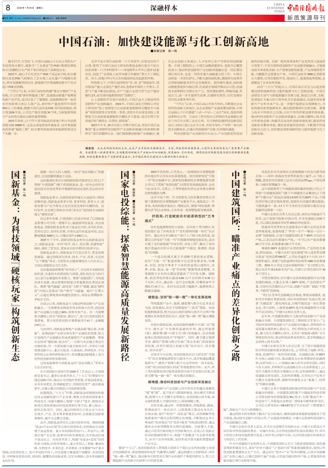 在产业协同方面,国新基金构建了"五个赋能"体系。通过资本纽带连接技术、产业、改革和生态资源,既为央企提质增效注入动能,也为创业企业提供战略支持。具体实践中,绘制战新产业投资图谱,建立与央企的常态化对接机制,深化与国家级创新中心、重点实验室、头部高校的科研合作,形成覆盖创新全链条的培育闭环。